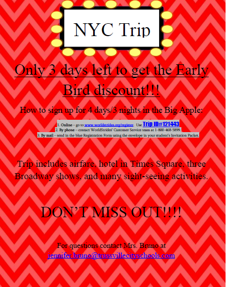 See the flyer below for information on the upcoming New York Trip for next school year!!